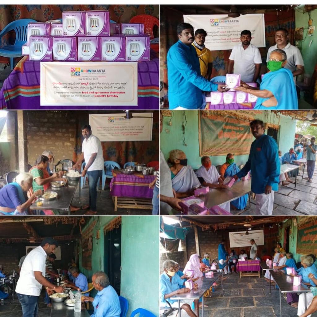 Organised Food and Spirometers for Old-age home and Orphanages in Vizag, Chittore, Gudivada and Gurajala on the occasion of our team member Sriram Thota’s son Darshik’s Birthday through Choowrasta.